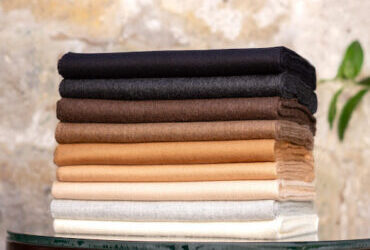 The scarves, stoles and shawls are made of fine, natural fibers, such as Royal Alpaca, Baby Alpaca, Vicuña, Silk and other blends. The production of a versatile range of accessories from light to warm and cozy, always with an exceptional and soft touch.